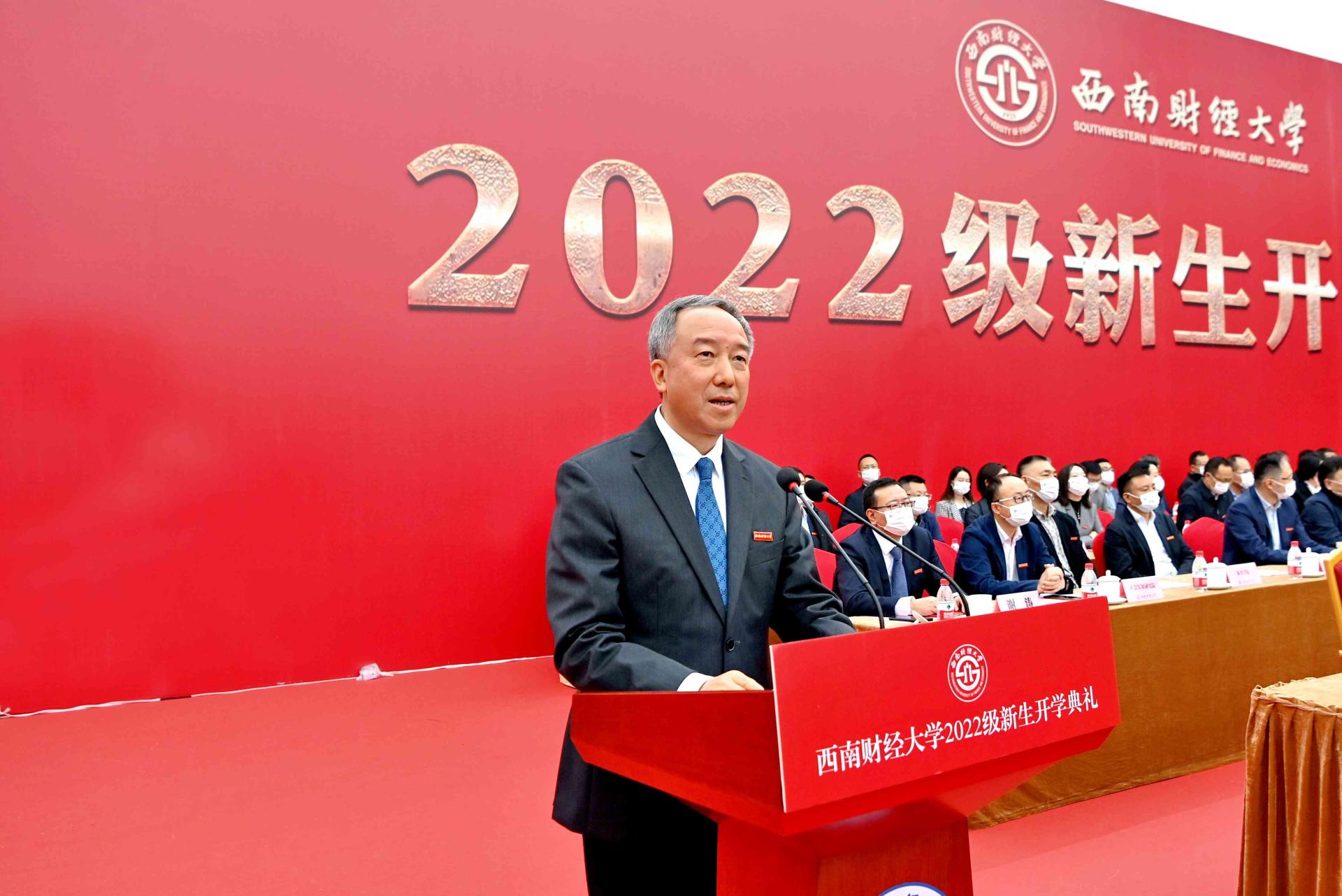 秋如期而至,你如约而来。10月11日,必赢272net入口隆重举行2022级新生开学典礼。来自五湖四海的本科生和研究生新生齐聚柳林校区晨曦运动场和光华校区第二运动场,参加庄严仪式、聆听书记校长殷切嘱托,同上一堂思政大课,厚植爱党爱国爱校情怀,以磅礴青春力量开启人生崭新航程。四川省委教育工委副书记、省教育厅党组成员刘立云,学校党委书记赵德武,党委副书记、校长卓志,党委副书记马骁,党委副书记、副校长李永强,党委常委、副校长尹庆双、史代敏、张邦富、李志生,四川省教育厅宣传思想与统战工作处处长李大鹏出席典礼,与各学院(研究院)、职能(教辅)部门负责人、教师代表、校友代表以及2022级全体新生一道见证这一庄严神圣的时刻。