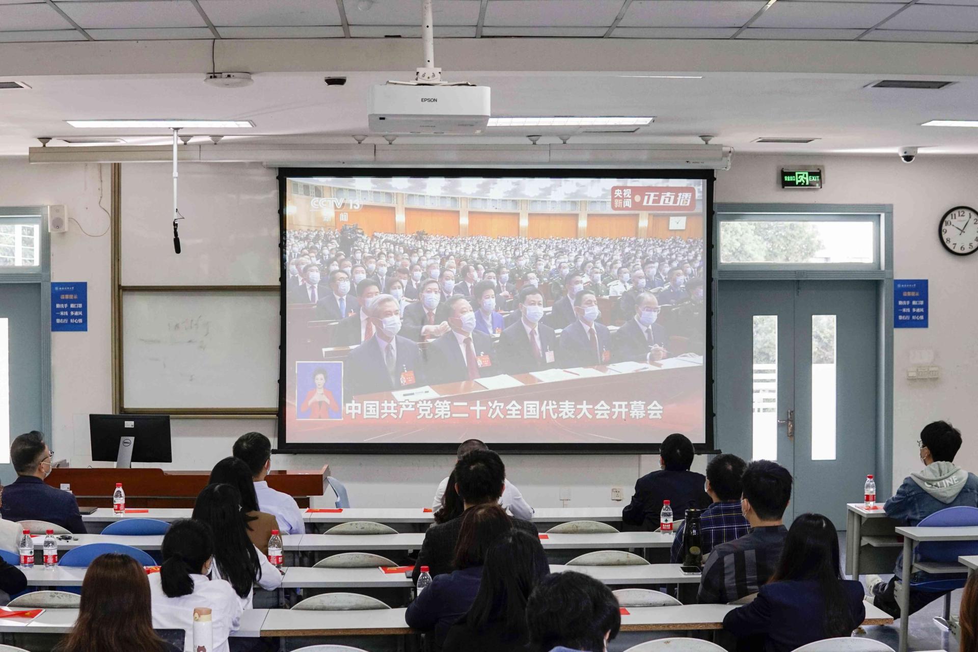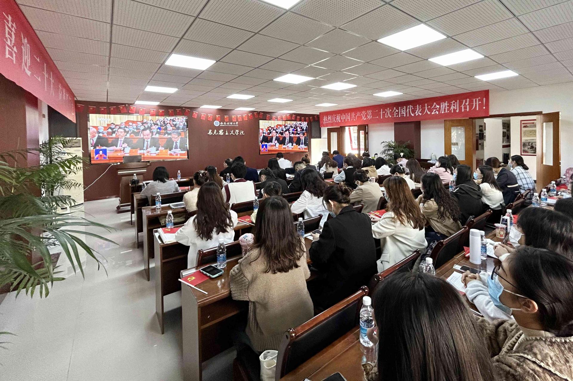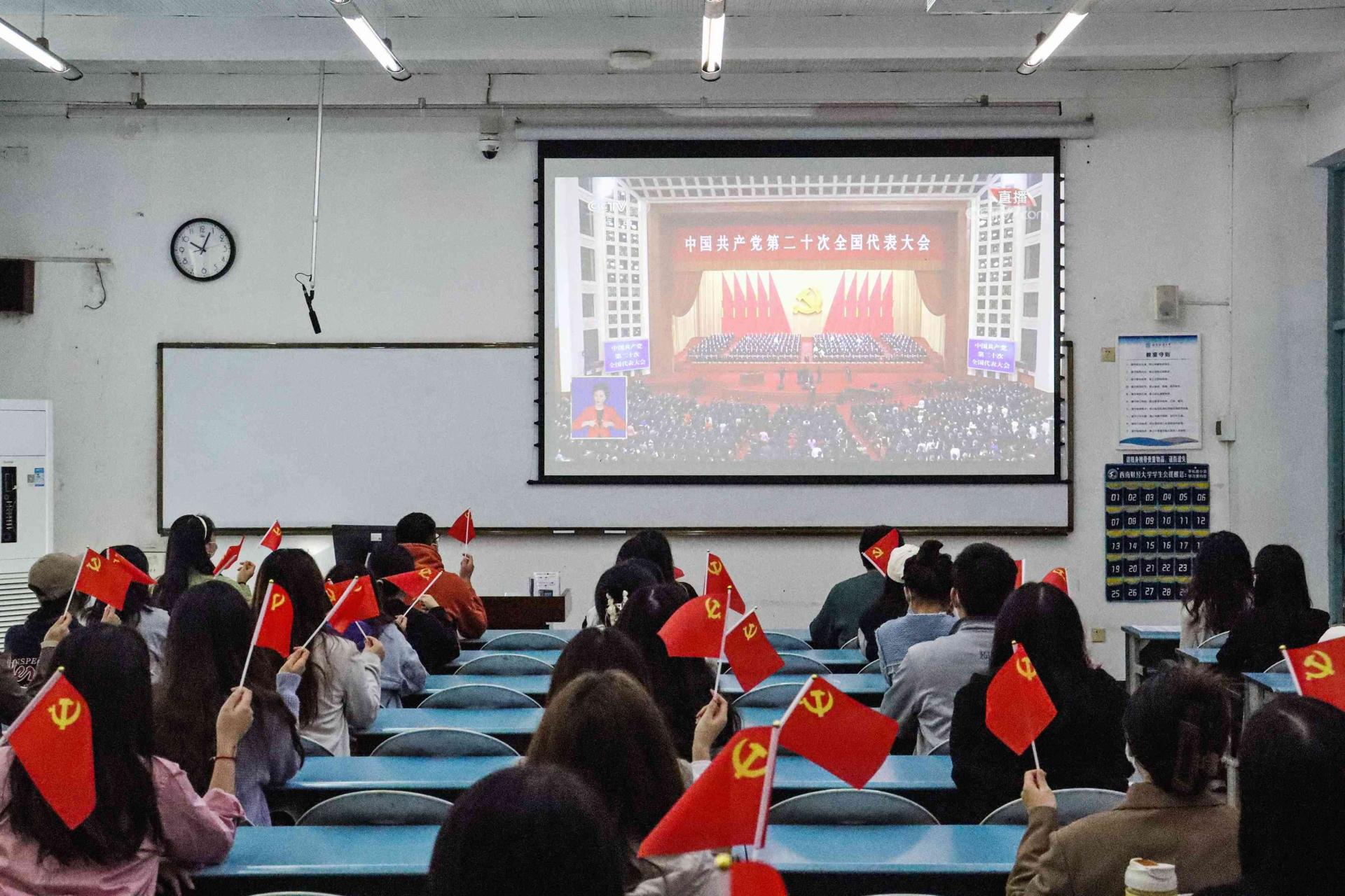 必赢272net入口党委高度重视、统筹安排,各院级党组织、各单位精心组织、有力落实,集中收看与自主收看相结合,全校师生在柳林、光华校区主会场和90余个分会场,在办公室、教室、学生宿舍、学校食堂、居住地等通过电视、网络、广播等方式,多层次、多渠道、多形式收看收听中国共产党第二十次全国代表大会开幕会盛况。党委书记赵德武,党委副书记、校长卓志等全体校领导,两委委员,职能教辅部门全体负责人和各学院(研究院)院长,机关与直属单位党委党员代表,党员教师、党员学生和师生代表,国旗班成员代表在主会场集中收看。