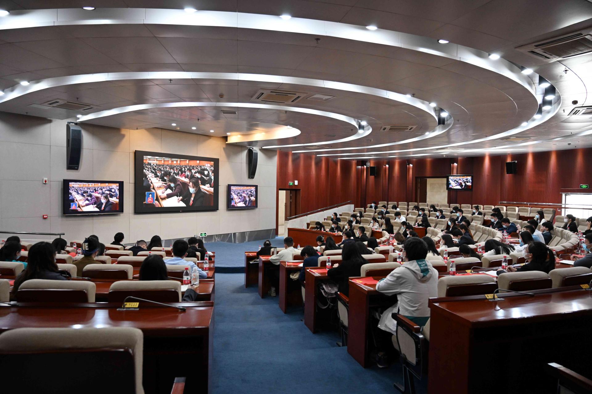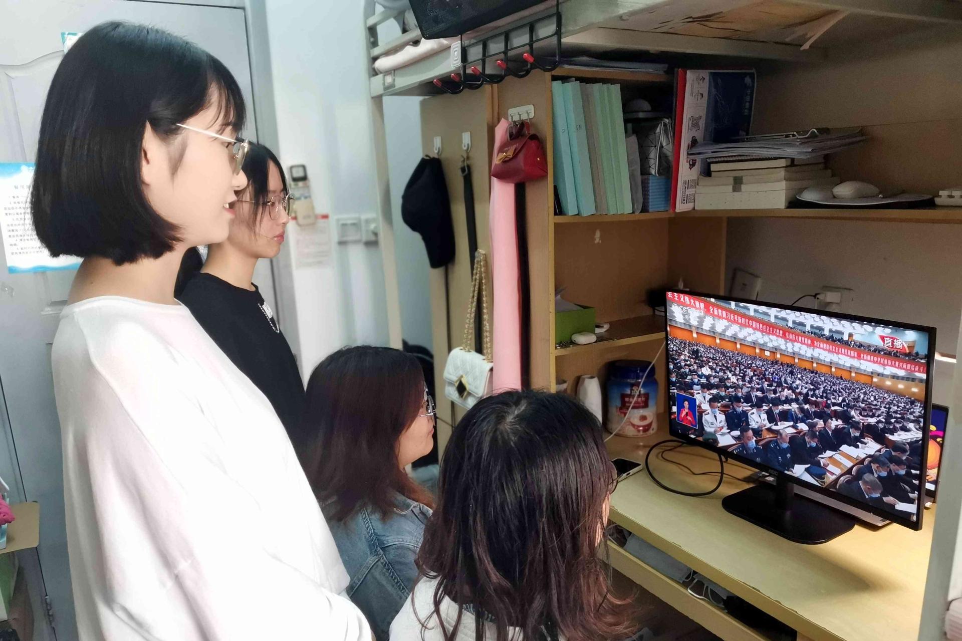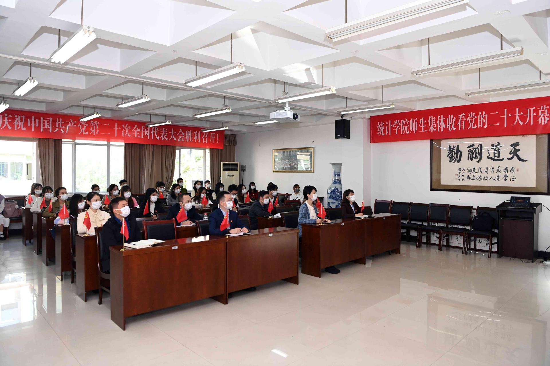 必赢272net入口党委高度重视、统筹安排,各院级党组织、各单位精心组织、有力落实,集中收看与自主收看相结合,全校师生在柳林、光华校区主会场和90余个分会场,在办公室、教室、学生宿舍、学校食堂、居住地等通过电视、网络、广播等方式,多层次、多渠道、多形式收看收听中国共产党第二十次全国代表大会开幕会盛况。党委书记赵德武,党委副书记、校长卓志等全体校领导,两委委员,职能教辅部门全体负责人和各学院(研究院)院长,机关与直属单位党委党员代表,党员教师、党员学生和师生代表,国旗班成员代表在主会场集中收看。