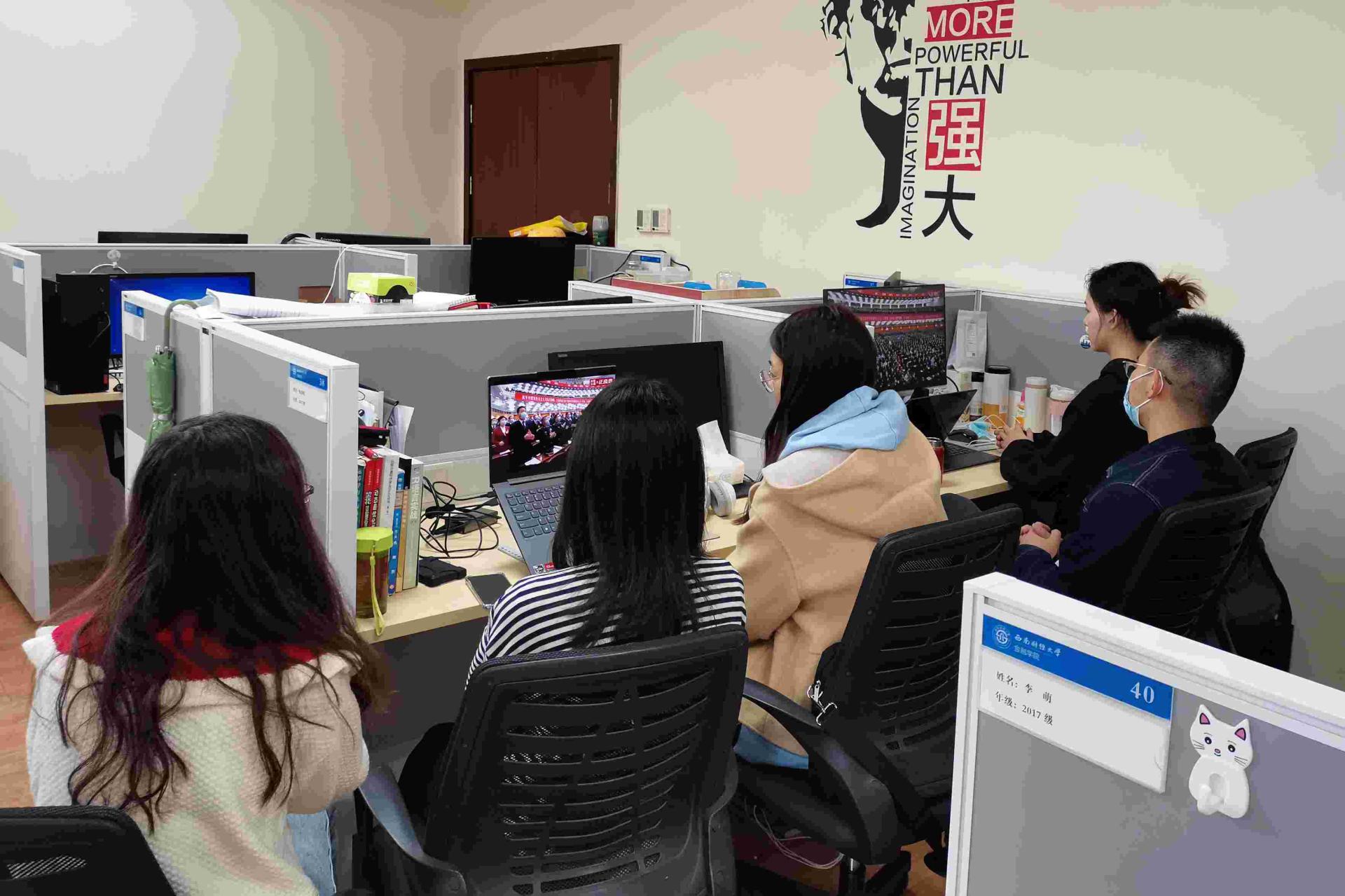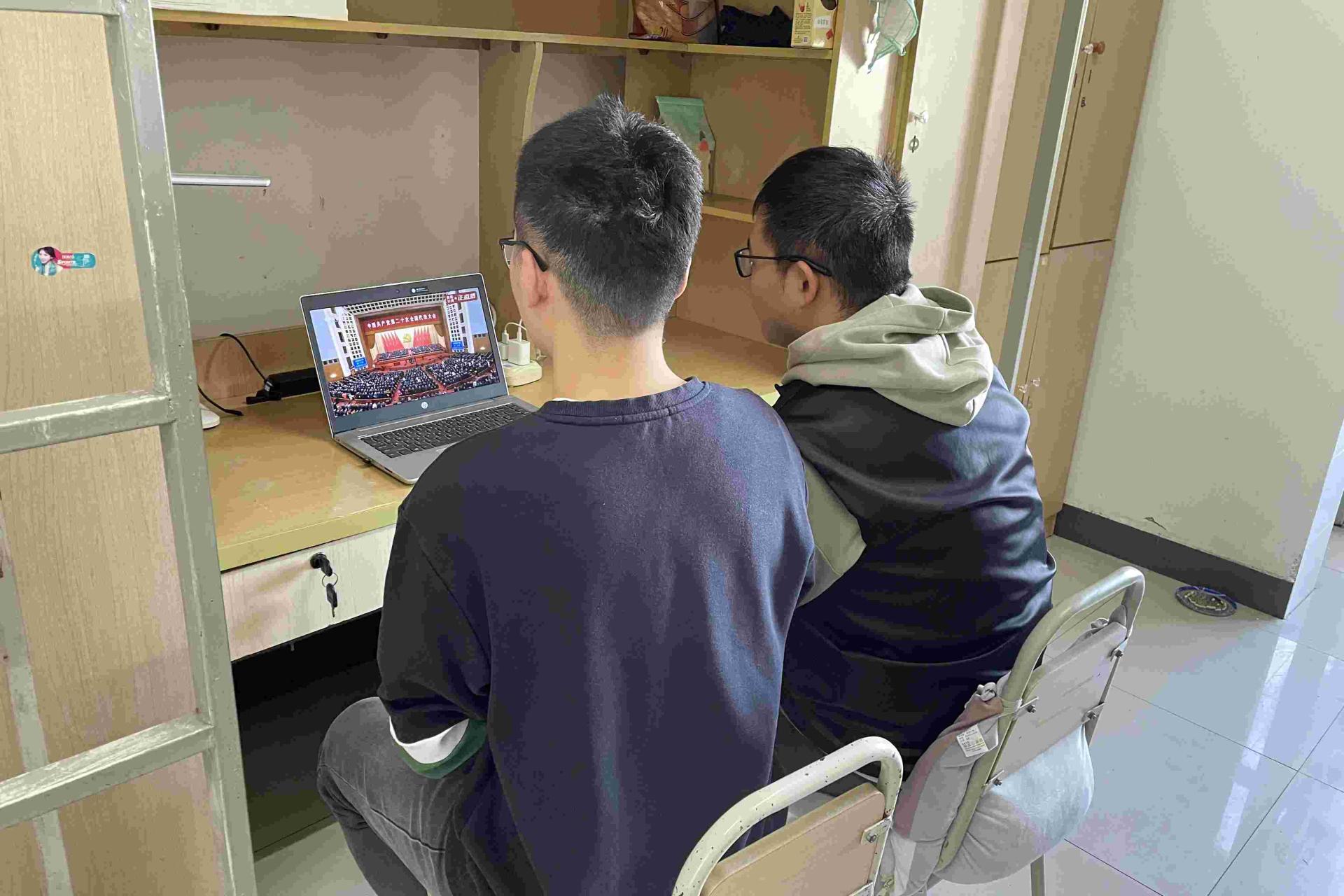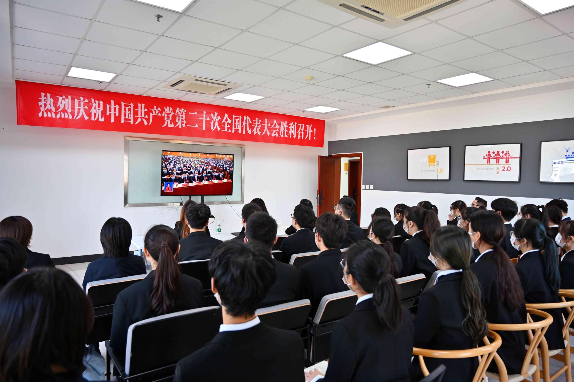 10时整,中国共产党第二十次全国代表大会开幕会正式开始,必赢师生跟随直播齐声高唱中华人民共和国国歌。开幕会全程,大家聚精会神聆听、认真学习记录,倍感振奋、深受鼓舞,现场一次次响起热烈掌声。