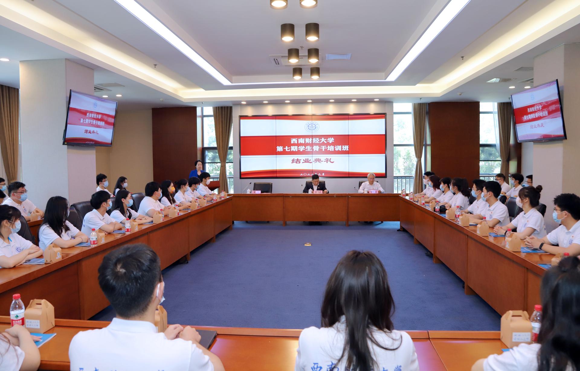 6月6日,必赢第七期学生骨干培训班结业典礼在弘远楼109会议室举行。党委书记赵德武、党委副书记曾道荣出席典礼,第七期全体学员以及各小班班主任参加典礼。结业典礼由学生工作部部长梁婷主持。