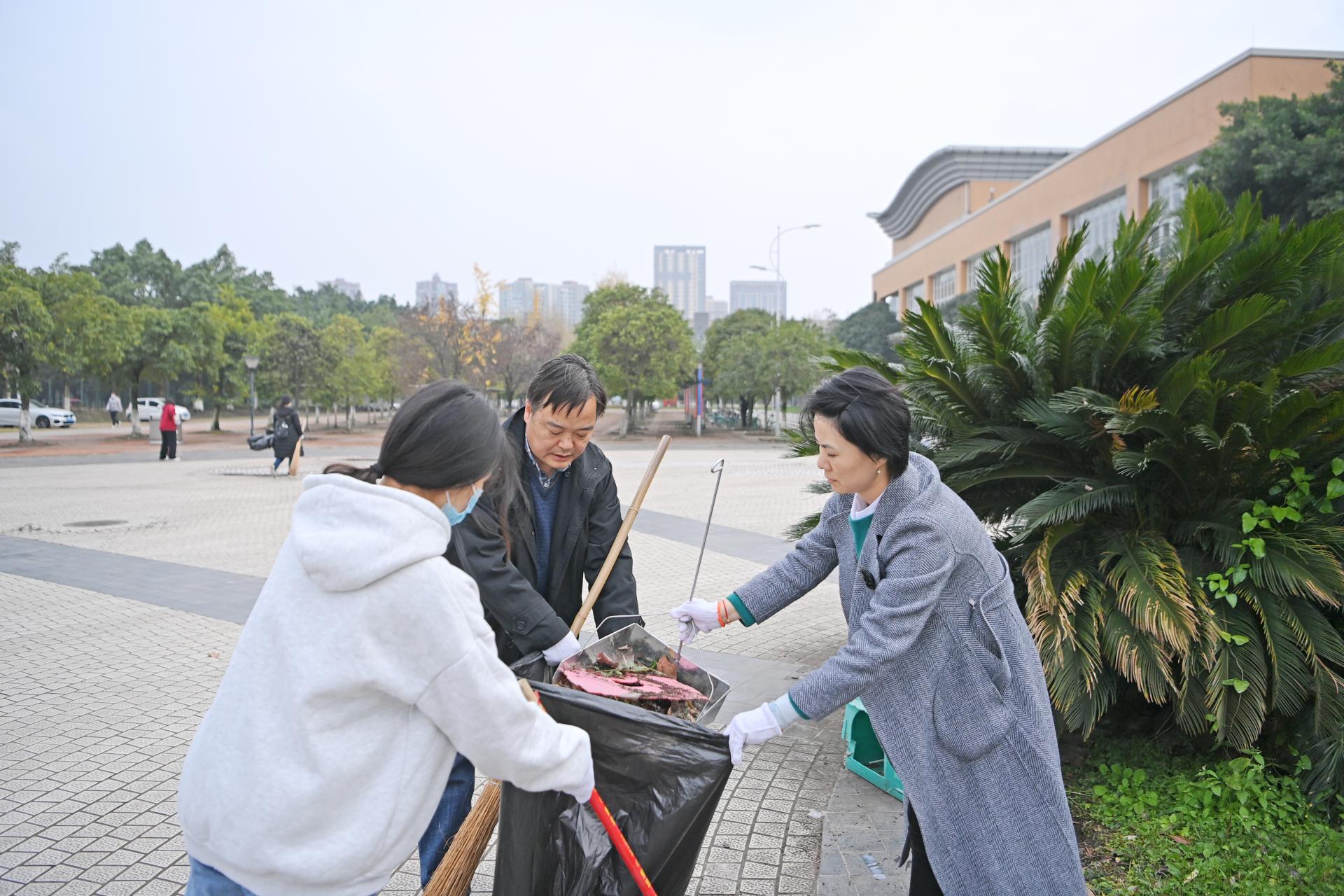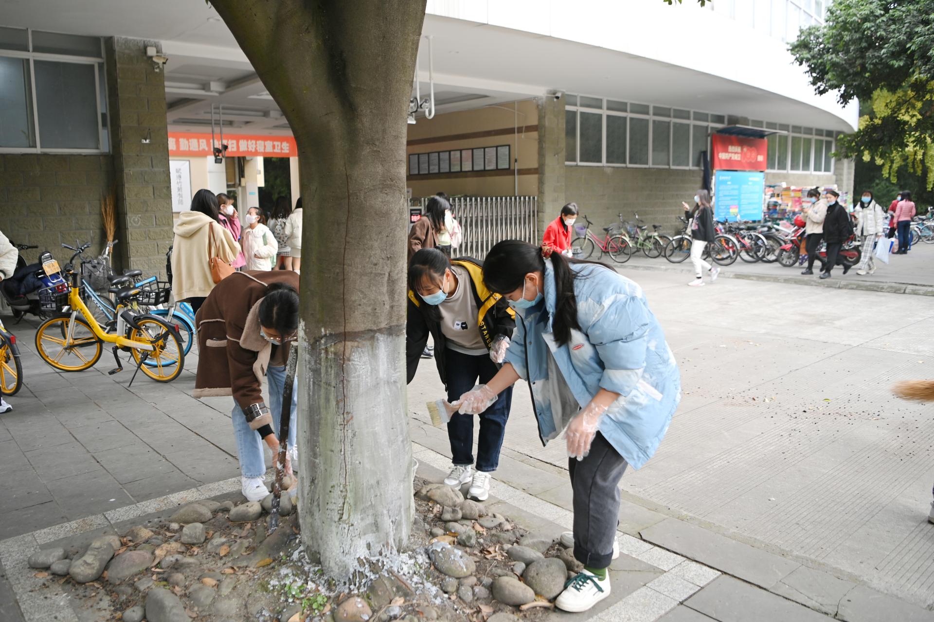 11月19日,学校统筹实施“必赢园、我爱护”劳动教育项目,进行全校公共区域大扫除及环境消杀。按照学校统一规划协调,下午14点30分,校领导赵德武、马骁、范卫宏、史代敏、张邦富在柳林校区,彭龙、欧兵在光华校区,分别来到各学院学习生活环境分片包干责任区域,与广大中层干部、学院师生代表、后勤员工一起开展了校园大扫除和环境消杀活动。在教学区、行政楼、食堂、运动场以及附近地面和绿化带,校领导和师生们拿起扫帚、竹耙等工具,认真清扫地面、耙除落叶、搬运垃圾,彻底清理每一个卫生死角,对于角落、夹缝等不便清理的位置更是徒手清理。大家还仔细地进行树干涂白,完成校园林木杀菌防虫工作。领导干部争当表率,广大师生不怕苦不怕累,校园一片有条不紊、热火朝天的劳动景象。经过一个下午的辛勤劳动,校园大道小径一尘不染,处处草坪重现绿色,美丽校园焕然一新。