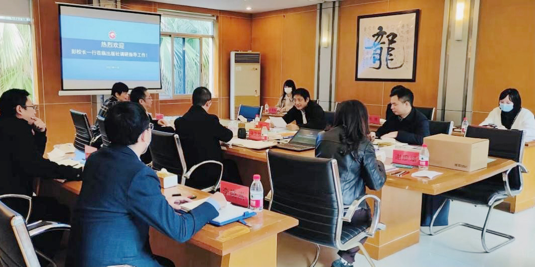 近日,党委常委、常务副校长彭龙到出版社调研指导工作,研究生院负责人、出版社领导班子及相关业务部门同志参加了会议。出版社负责人从社会效益、经济效益情况、“十四五”发展规划、重点出版项目、教材建设等方面作了简要汇报。研究生院院长周铭山就出版社产品规划尤其是研究生教材建设规划同出版社人员进行了交流。