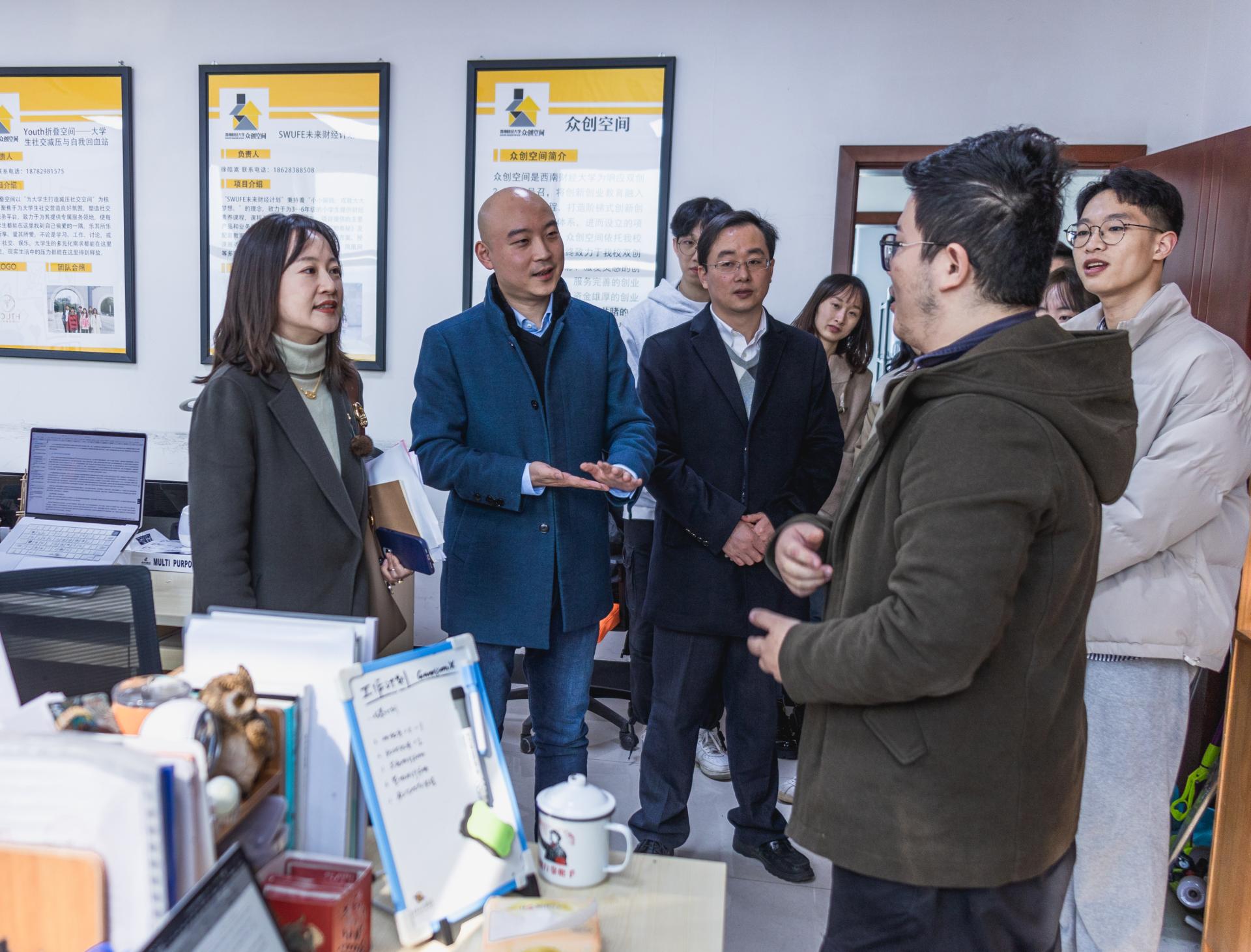 调研期间,乔木一行结合就业统计调研工作到统计学院进行座谈交流,并到创新创业中心实地参观考察。