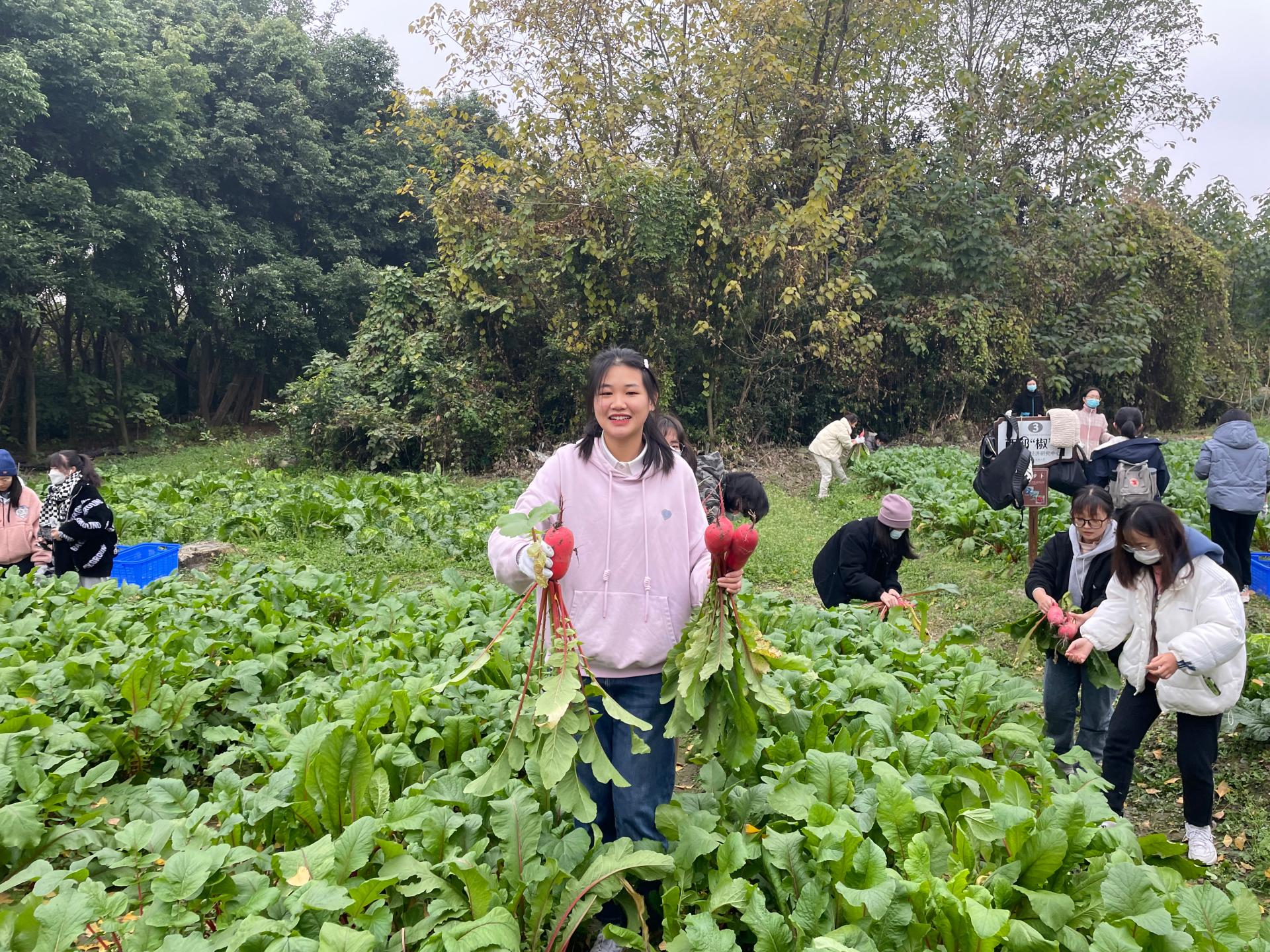 寒冬时节,学校“耕读田园”果蔬种植劳动实践基地内,白菜、萝卜、牛皮菜和甘蓝郁郁葱葱,长势喜人,已进入成熟期。为充分发挥劳动实践育人功能,学校组织开展“耕读田园”丰收季劳动实践系列活动,同学们全程参与蔬菜采摘、售卖、烹饪等劳作体验。