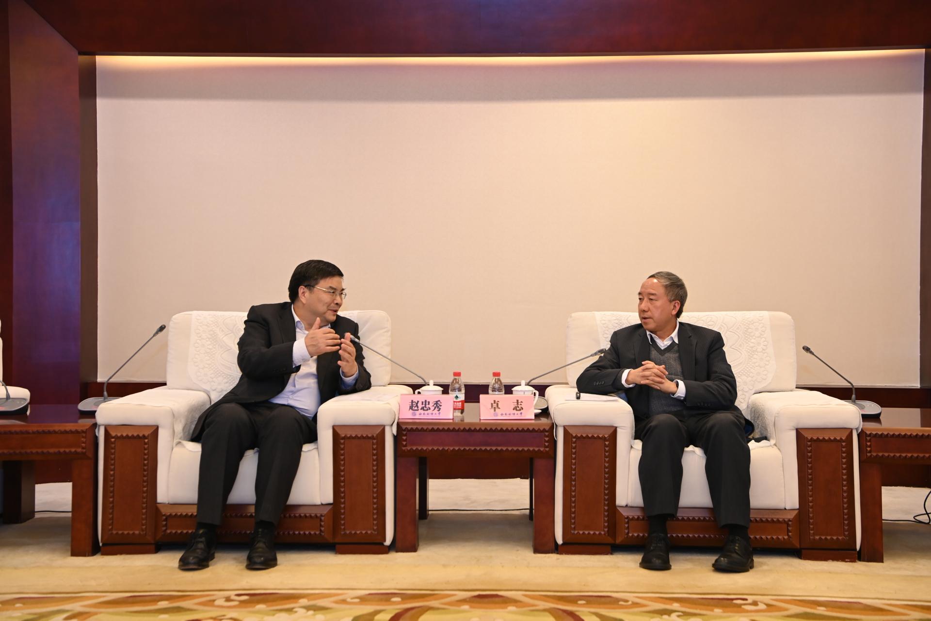 赵忠秀对学校长期以来的帮助和支持表示感谢,并简要介绍了山东财经大学的办学历史、发展现状以及特色学科建设情况。他表示,两校友谊源远流长,近年来在人才培养、科学研究、学科建设等方面交流合作更加紧密,结出了丰硕成果。希望以续签战略合作协议为契机,进一步增进交流、深化合作,共同探索拓展更广阔的合作空间。