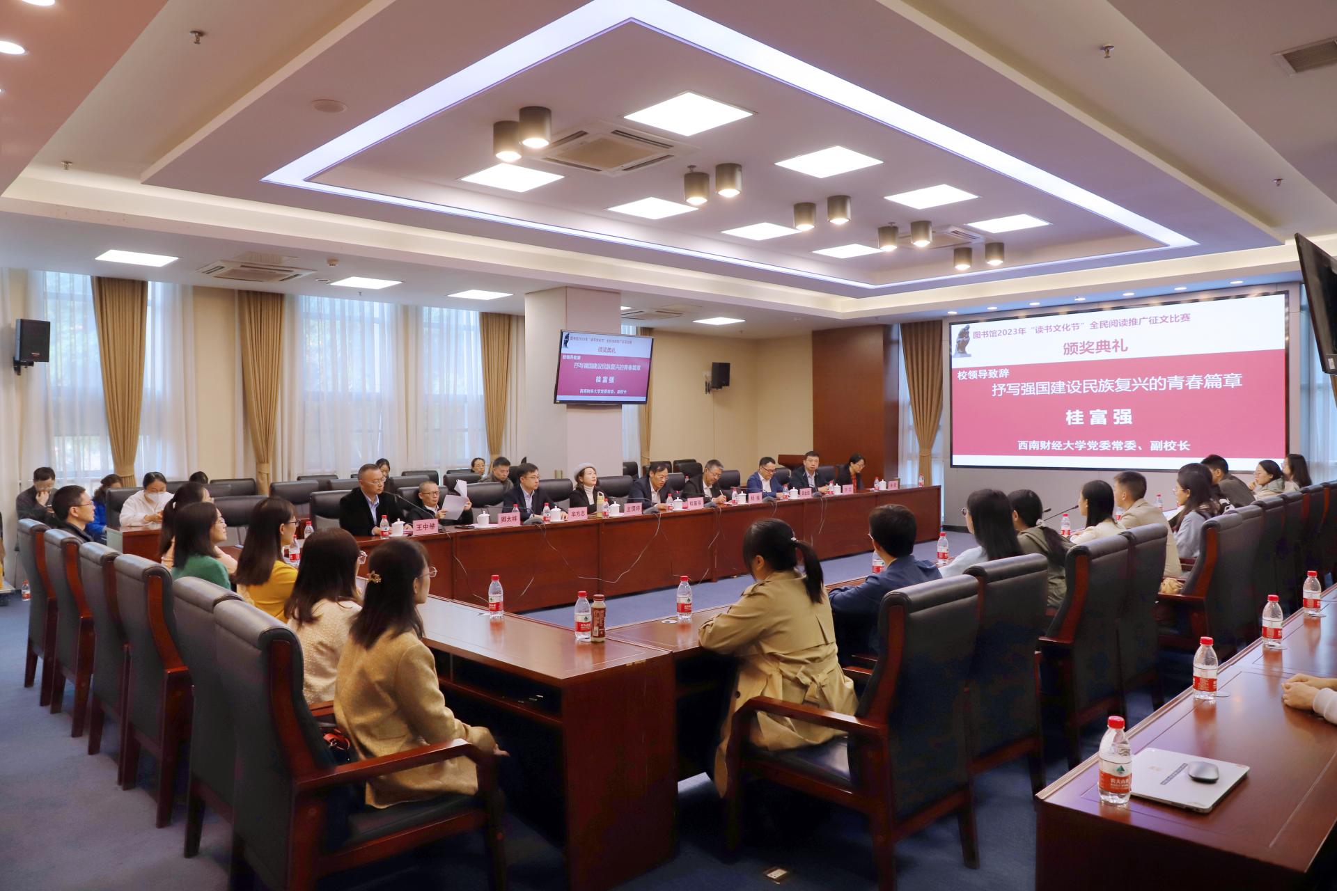为进一步学习贯彻习近平文化思想,以文育人,通过丰富多彩的文化活动更好地服务“文化必赢”建设,11月9日,学校在弘远楼109会议室举办2023年“读书文化节”全民阅读推广征文比赛颁奖典礼。党委常委、副校长桂富强出席典礼并致辞,学生工作部、校团委、教务处负责人参加活动,图书馆馆长龚金国主持。