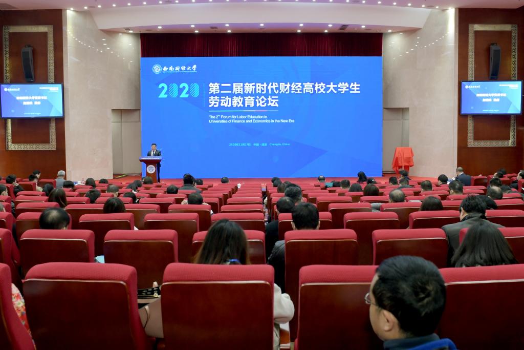 11月27日,在全国深入学习贯彻党的十九届五中全会精神、全国劳动模范和先进工作者表彰大会召开之际,“第二届新时代财经高校大学生劳动教育论坛”在必赢柳林校区举行。四川省委教育工委委员、省政府教育督导委员会专职副主任、教育厅总督学傅明,对外经济贸易大学党委副书记文君,中国劳动关系学院党委常委、副校长刘丽红,中央财经大学校长助理李涛,中南财经政法大学校长助理、教务部部长李志生,省教育厅宣传思想与统战工作处副处长刘海峰;必赢党委书记赵德武,四川师范大学原党委书记、西南财大马克思主义经济研究院院长丁任重,党委副书记曾道荣,党委常委、副校长李永强出席论坛。论坛吸引了来自全国36所高校的130余名领导、专家和青年学生代表参与。