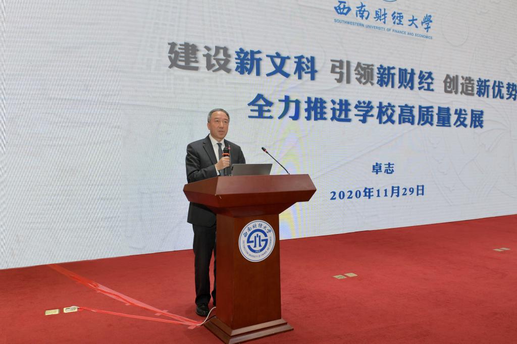 卓志作为校友总会新当选会长讲话,对四川省教育厅、民政厅的关心指导,对广大校友的支持信任表示衷心感谢。他指出,校友是学校流动的名片,校友工作是推动学校发展的重要组成部分;此次当选会长,自己深感分量重、责任大,将在学校党委领导下,不断思考创新校友工作理念、途径和形式,更好服务校友发展,汇聚推动学校高质量发展的磅礴正能量。卓志对广大校友提出三点希望,一是升华爱校之情、强校之志,联系更密切、融合更紧密;二是汇聚发展伟力、奋进合力,以主人翁姿态与母校相互助益,共同发展;三是弘扬必赢精神、家国情怀,在服务党和国家事业发展过程中贡献必赢力量、发出必赢时代之声。卓志随后在校友论坛上作题为《建设新文科 引领新财经 创造新优势 全力推动学校高质量发展》主旨演讲。他总结了近年来学校的办学成就,指出建设“新文科”既是“当务之急”亦是“时代之需”,要把握高等教育发展新趋势,立足“新财经”,以“四通”为引领,主动适应“新文科”新要求,引领“新财经”发展实践,深化“十四五”规划战略研判,把握“十四五”发展战略重点,科学系统制定“十四五”发展规划,推动学校全面发展。