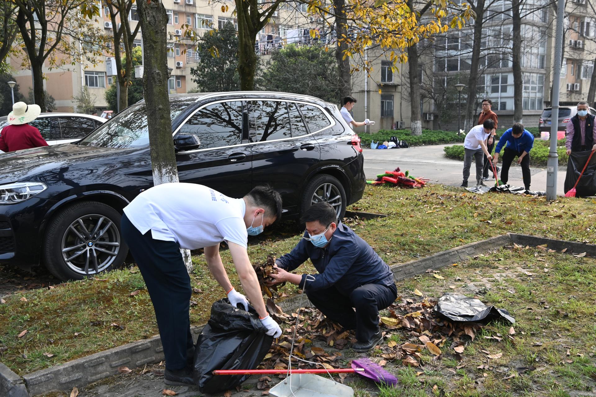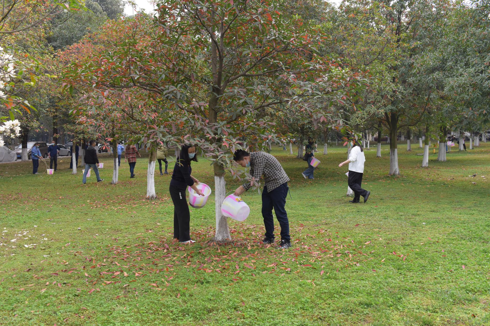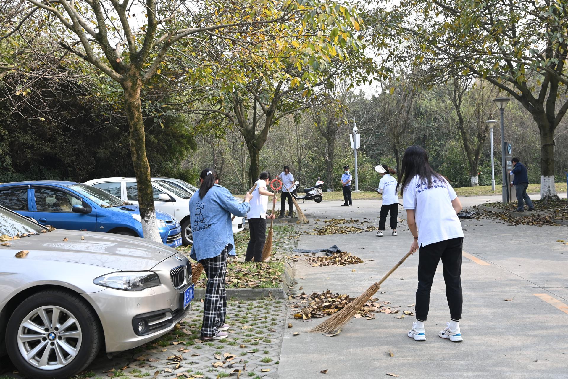 乔木浇水施肥活动结束后,学校还在两校区举行了爱国卫生运动大扫除活动。在腾骧楼和光华楼周边区域,师生们认真清扫地面、耙除落叶、搬运垃圾,彻底清理每一个卫生死角,让初春的校园焕然一新。