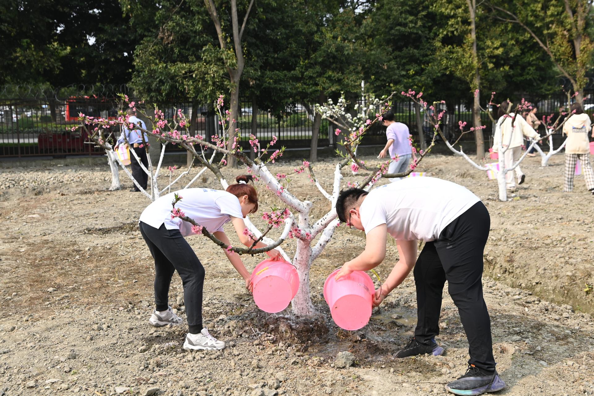 下午三点半,乔木浇水施肥活动在“耕读田园”果蔬种植劳动实践基地及光华楼西侧草坪举行,旨在以春季树木养护为载体,引导师生爱护草木、珍爱绿色,培养师生乔木养护技能。在校领导的带领下,师生们撸起袖子拎起水桶,一趟趟奔忙在树林间,有的取水拎水、有的浇根施肥,劳动现场有条不紊,一片热火朝天的繁忙景象。经过一个多小时的通力协作,约7000㎡200余棵乔木的浇水护树任务顺利完成。