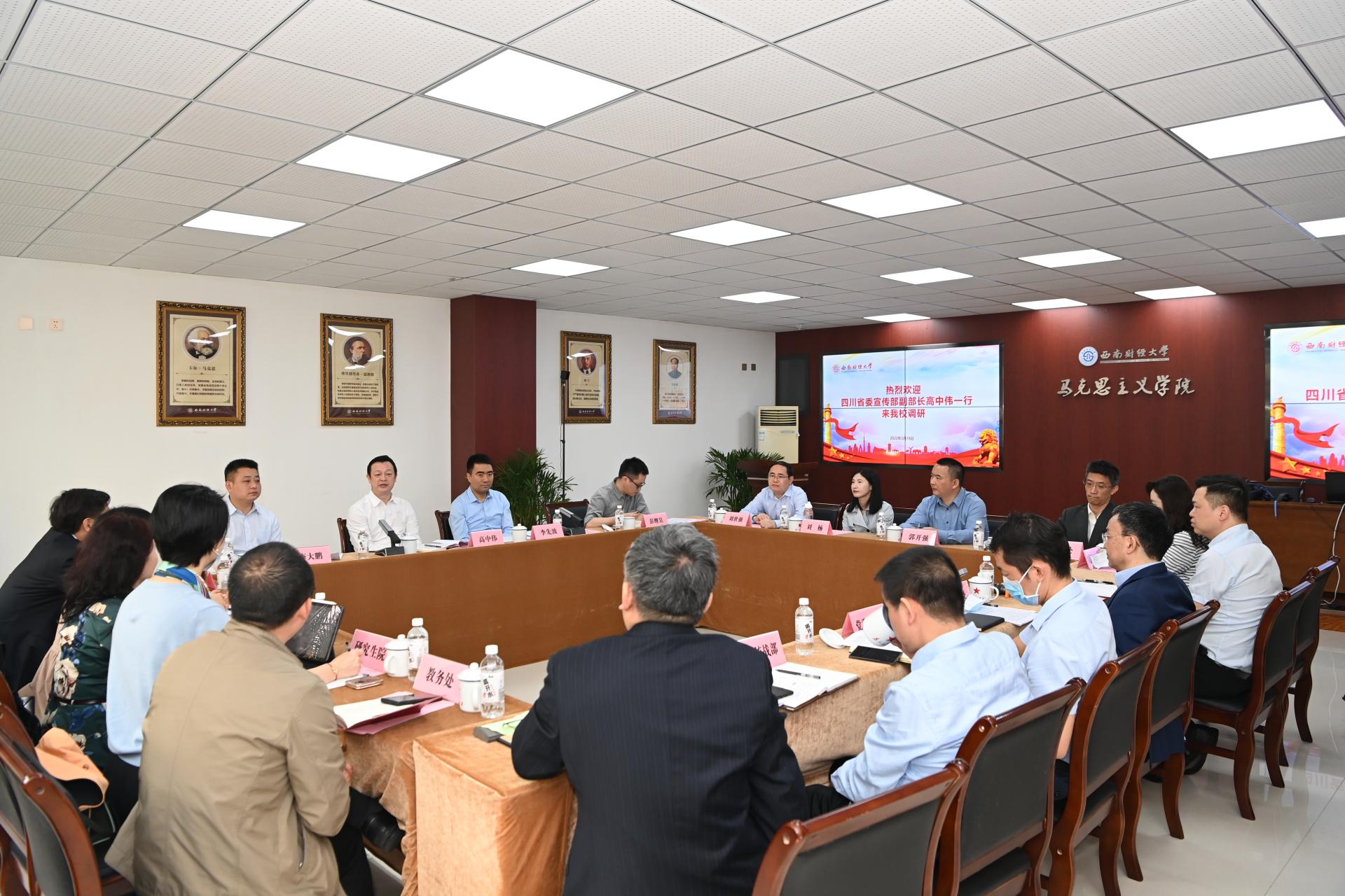 座谈会上,马骁简要介绍了学校党委深入贯彻习近平总书记系列重要讲话精神的具体实践,以及学校党委大力加强马克思主义学院建设的战略考量、着力重点和马克思主义学院入选四川省重点马院以来取得的成效,希望省委宣传部、省教育厅一如既往地给予学校和马克思主义学院建设更多指导和更大支持。