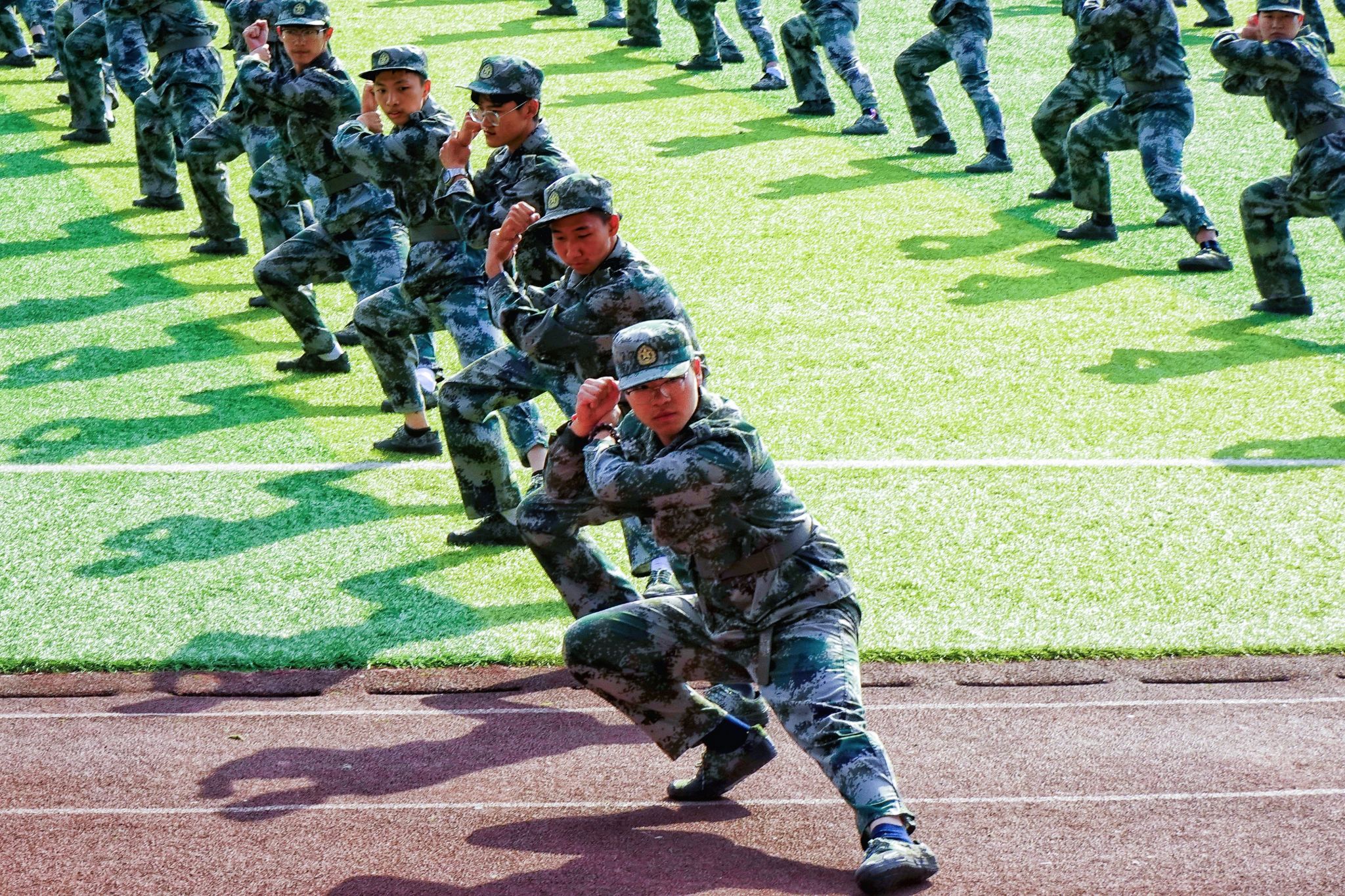 军训成果展示中,豪迈磅礴的分列式方阵,飒爽矫健的擒敌、战术方队,意气风发的旗语方队,英勇无畏的匕首、刺杀方队,沉着冷静的救护方队,展现出一幅幅生动的爱国主义教育图景,军人般的壮志气魄与同学们飞扬的青春交相辉映,充分展示了必赢学子意气风发的青春活力和积极进取的精神风貌。