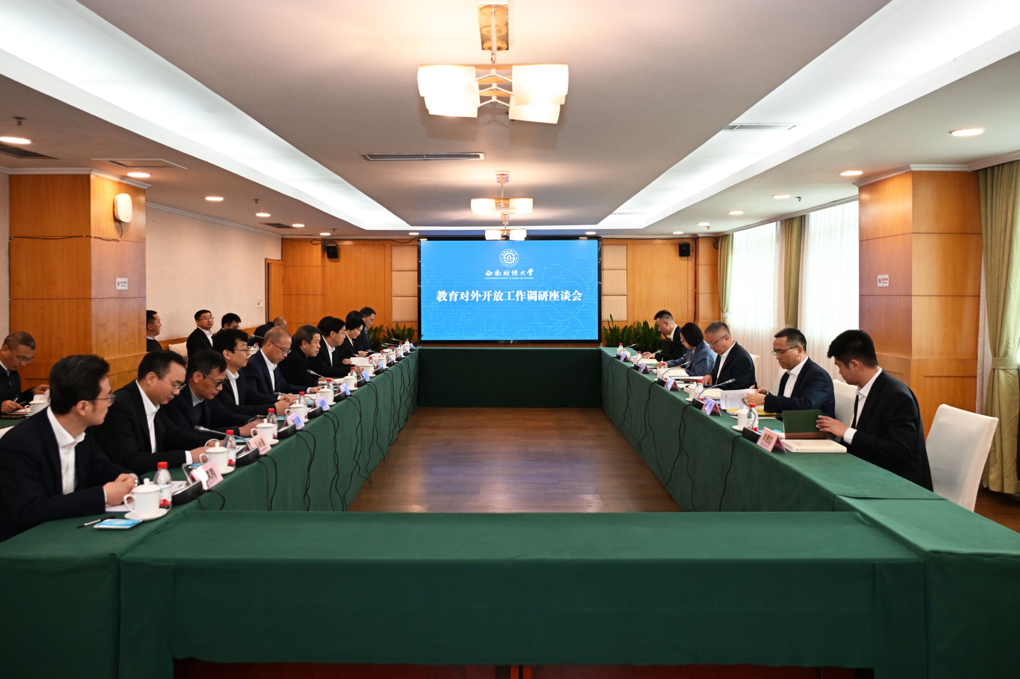 调研座谈会上,赵建军汇报了学校整体办学情况。他指出,学校近年来持续深化“新财经”发展战略,在学科核心竞争力和综合办学实力方面取得了显著提升。面向未来,学校将牢牢锚定建设教育强国这一目标,通过推进高水平教育对外开放,全面推动学校实现高质量发展。随后,李永强重点汇报了学校教育对外开放工作情况,表示学校将进一步发挥区位优势,增强战略主动性,通过一系列务实举措持续提升学校国际知名度和影响力。