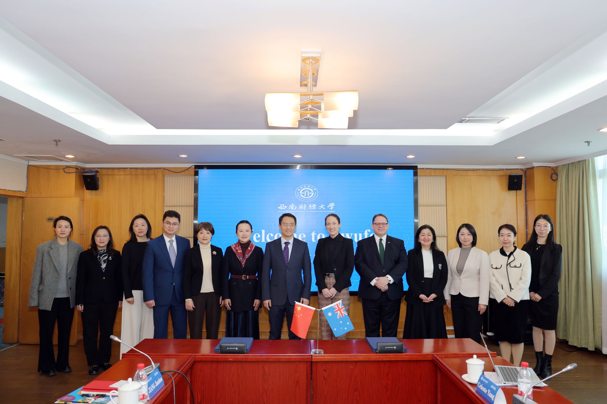 王擎对代表团表示欢迎并简要介绍学校的历史沿革、学科布局及国际交流合作成果。他表示,2024年阿德莱德大学与南澳大学成功合并组建新阿德莱德大学,学校与合并前的两校均长期保持友好合作关系,希望未来与新阿德莱德大学进一步拓展合作维度,在人才联合培养、学术资源共享、前沿领域协同研究及融合学科共建等方面打造创新模式、落地重点项目,为“新财经”战略实施注入国际化动能,为“双一流”建设提供坚实支撑。