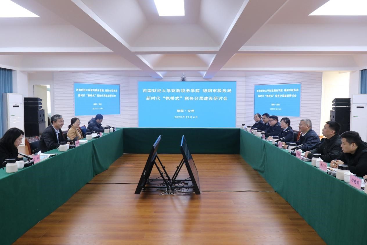 在安州区税务局花荄税务分局,财政税务学院与绵阳市税务局举办了“枫桥式”税务分局建设研讨会。何加明和张强分别致辞,双方围绕税务人才培养、研学基地建设、课题合作研究、新时代“枫桥经验”研究与培训等议题进行了深入讨论和交流,研讨会取得了建设性的结果。
