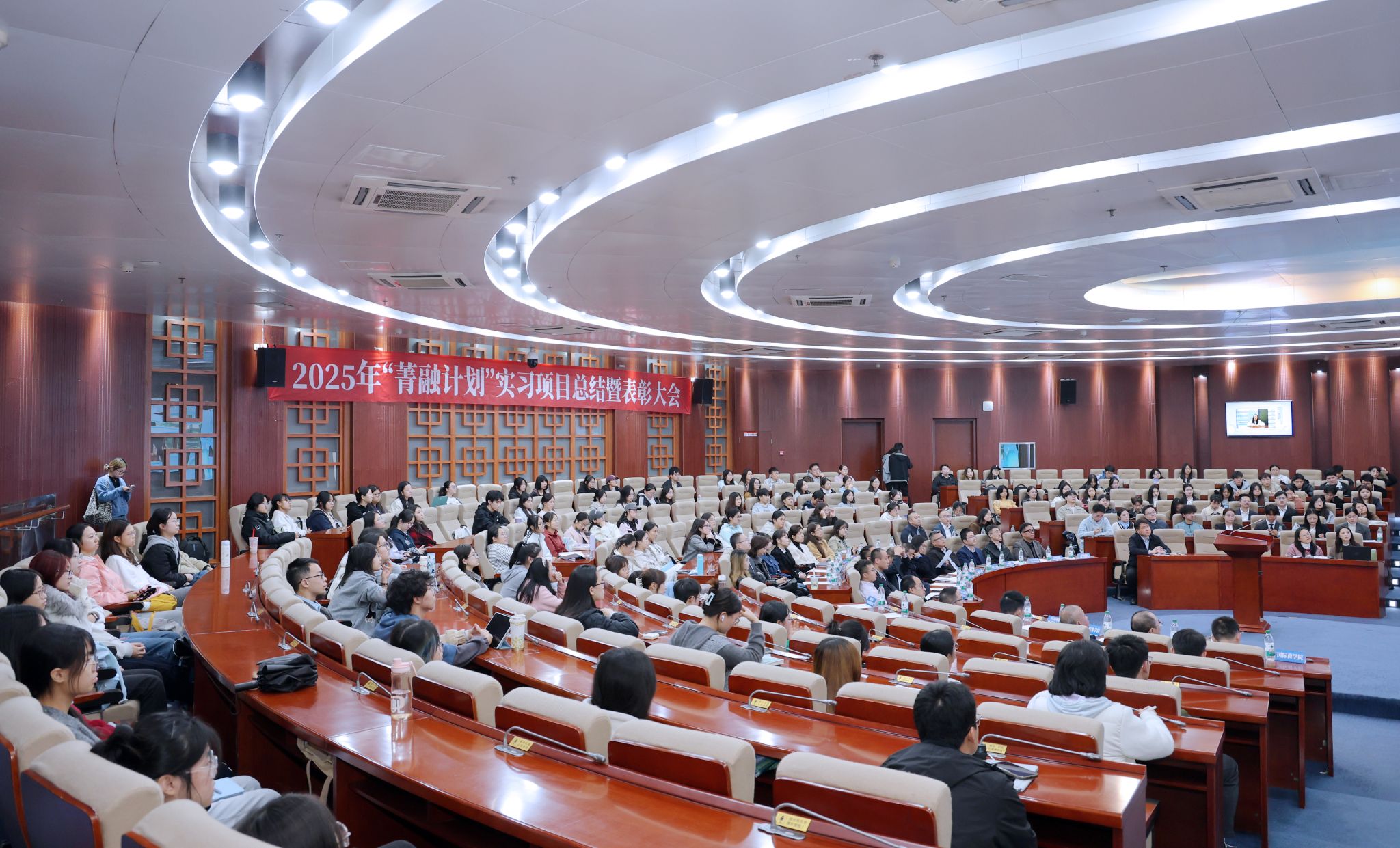 11月4日,“菁融计划”实习项目总结暨表彰大会在柳林校区举行。学校党委副书记明海峰,行业嘉宾代表,学校相关职能部门、学院(研究院)负责人,获奖学生及师生代表200余人参会。